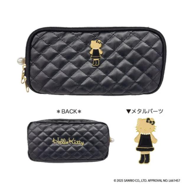 【10/14預購結單】▲特價 Sanrio 三麗鷗 Hello Kitty 皮質菱格紋收納包 (長腿黑洋裝)