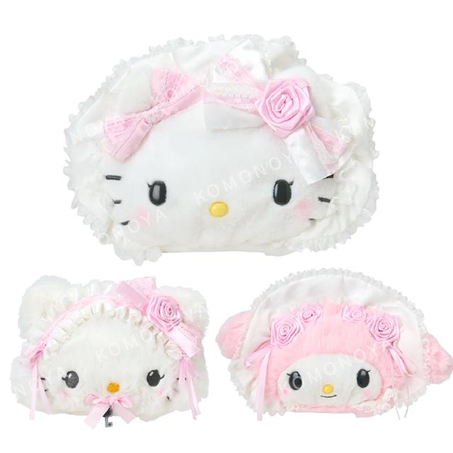 ▲預購特價【限購】Sanrio 三麗鷗 絨毛造型拉鍊化妝包 (蕾絲嫁紗) Kitty 美樂蒂 Charmmy