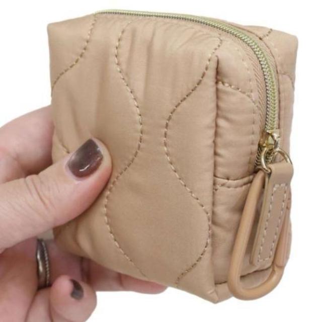 皮革材質,可當作小物包/零錢包,附扣環可掛在包包上