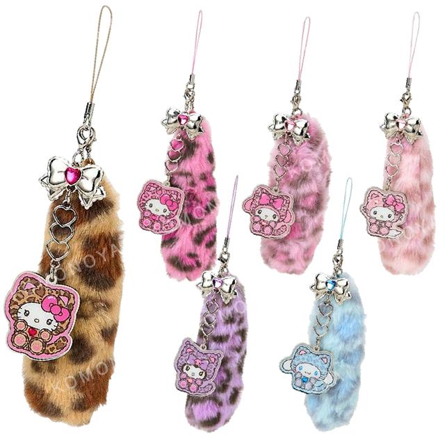▲特價【限購】Sanrio 三麗鷗 絨毛尾巴手機吊飾 (豹紋少女貓) Kiitty 美樂蒂 大耳狗