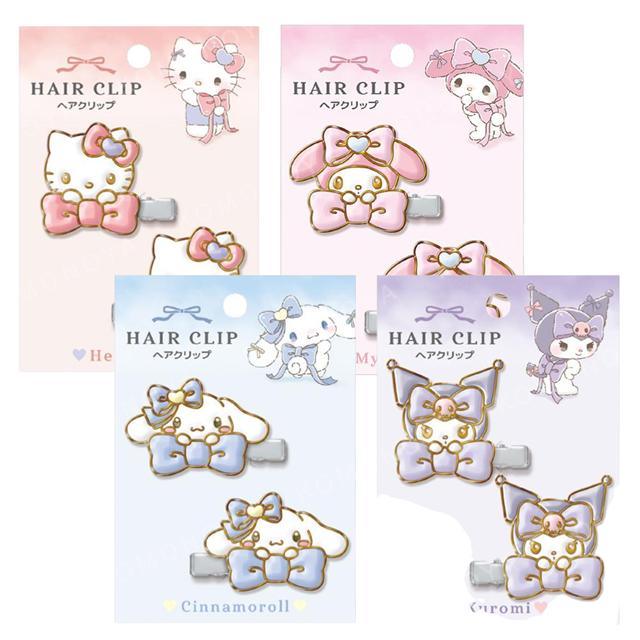 Sanrio 三麗鷗 金屬造型髮夾2入組 (蝴蝶結款) Kitty 酷洛米 大耳狗 美樂蒂