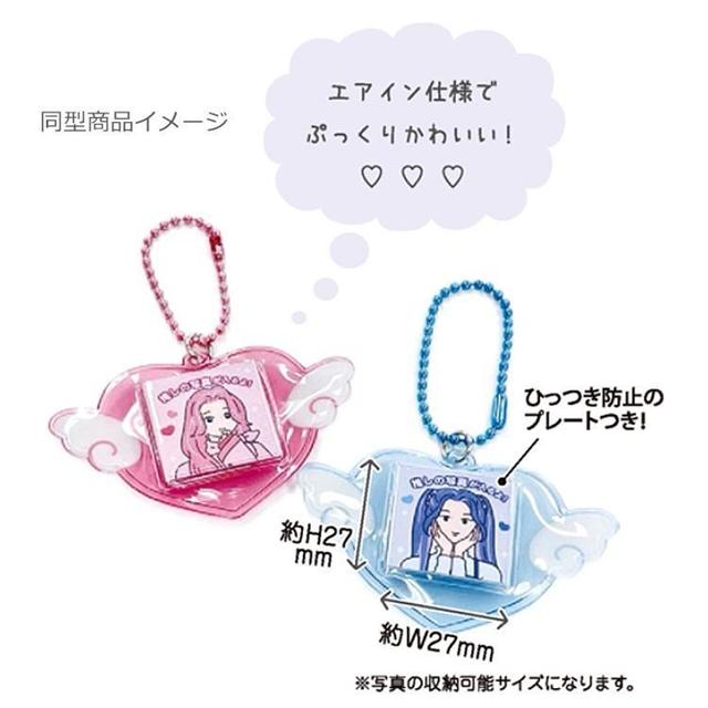 PVC透明材質,可以放入2.7 x 2.7cm照片/小卡,也可當姓名吊牌使用,附鎖圈可以掛在包包上